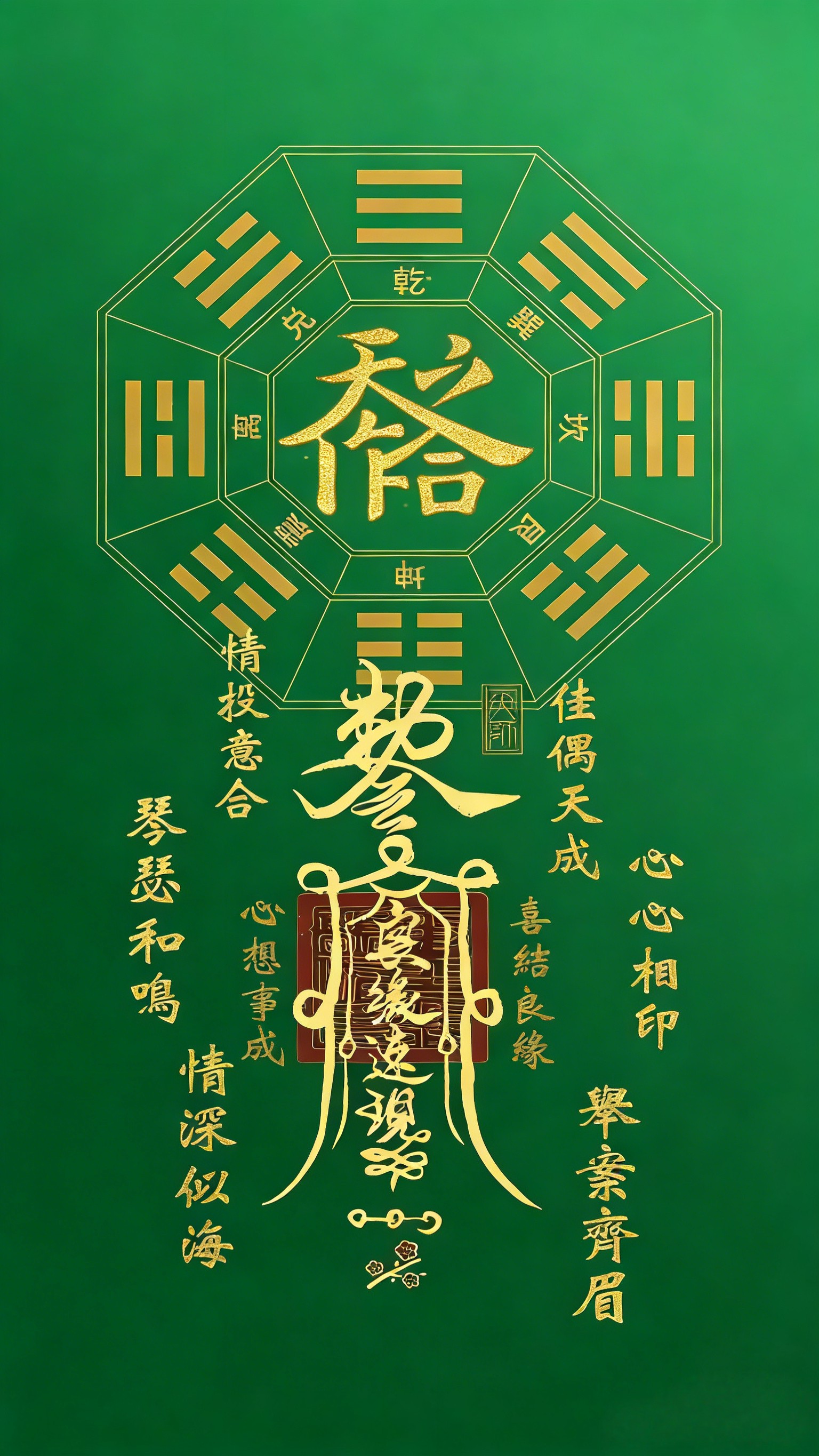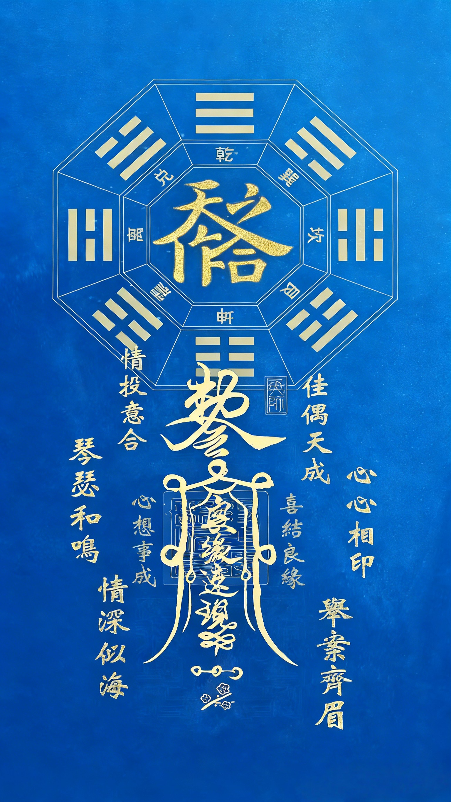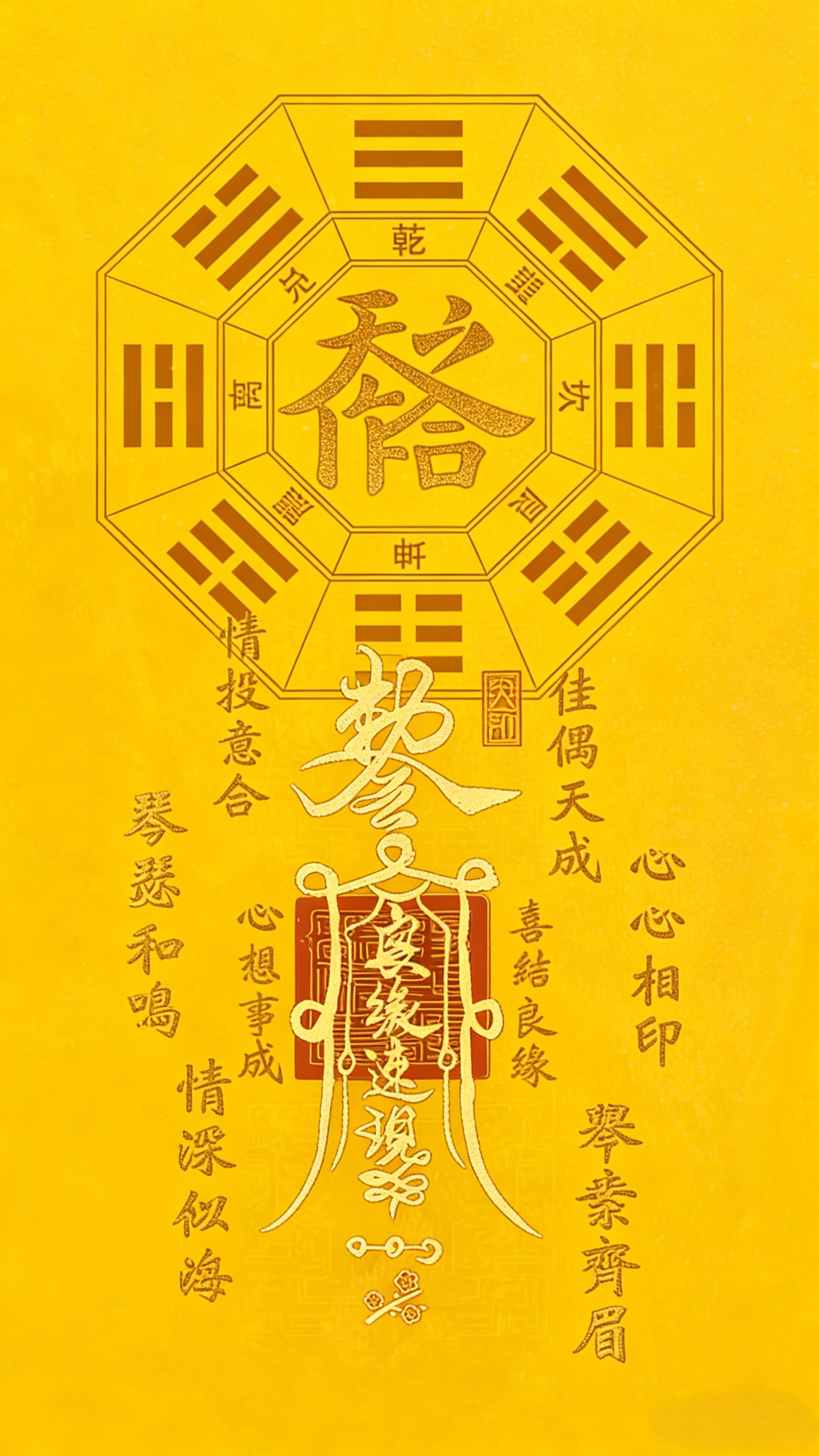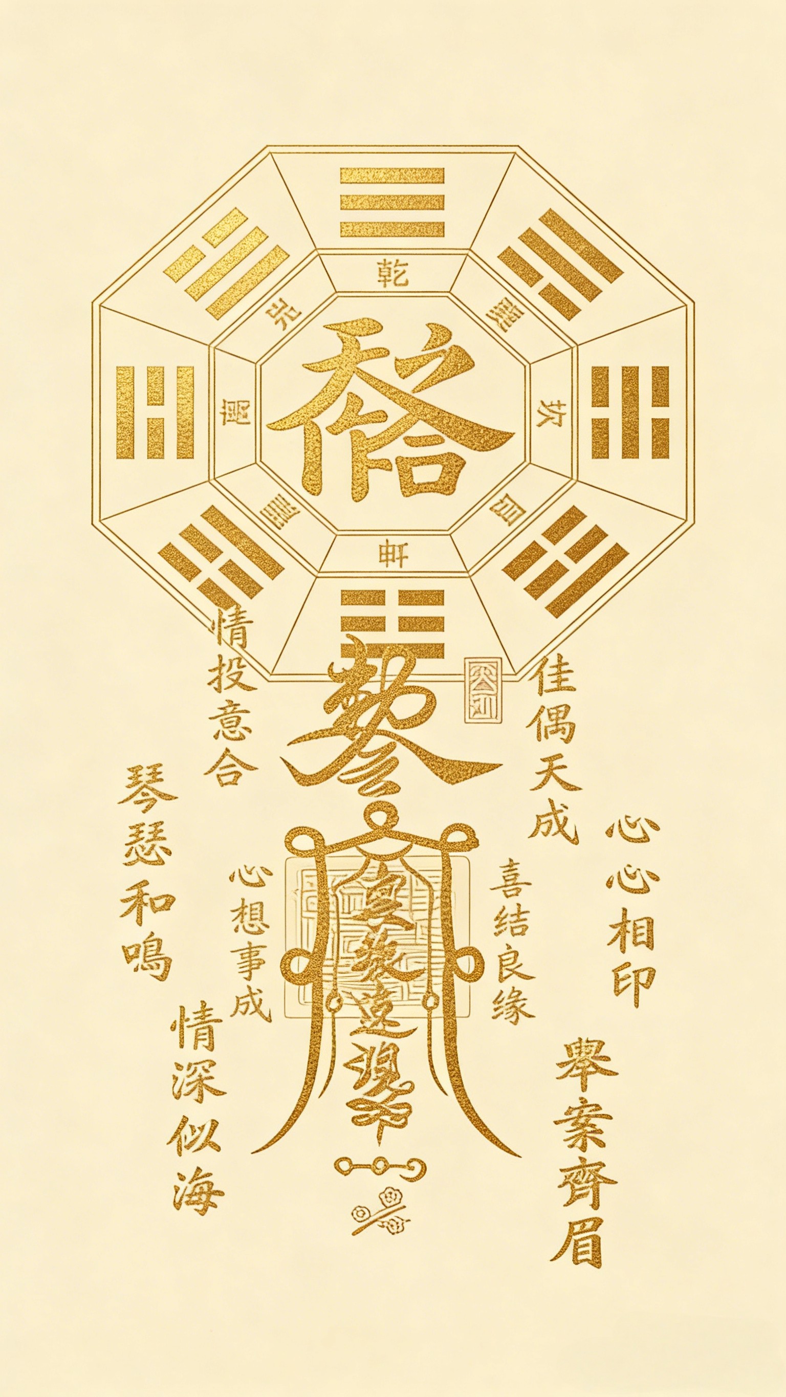 Versöhnung der zehn Götter des Ehegatten palastes, um den Pfirsich blüten stern zu bewegen. Entspricht der Beziehung zwischen dem offiziellen Töten und dem täglichen Stamm. In Anlehnung an das "Drei-Leben-Treffen", "Yin und Yang und Tai werden alle Dinge leben", lösen Sie die Einsamkeit, die Pfirsich blüten und das Böse und verbessern Sie das stillschweigende Verständnis zwischen Ehemann und Ehefrau. Es eignet sich für verspätete Ehen, wiederholte Gefühle und Konflikte nach der Heirat.