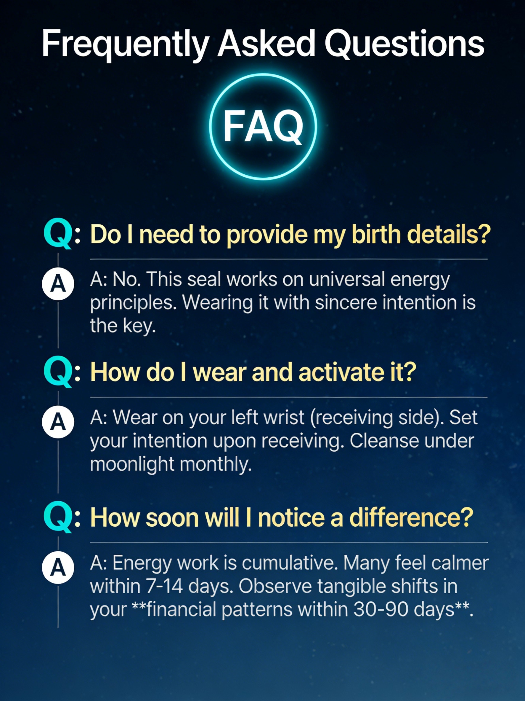 投资亏损、钱包丢失、意外大额支出、总是差一点谈成的生意、怎么攒都攒不住钱… 感觉财富气运在持续走低。通过特定水晶组合与“封财”符文,针对性能量层面阻断“漏财”路径,为你的财富下滑趋势紧急刹车